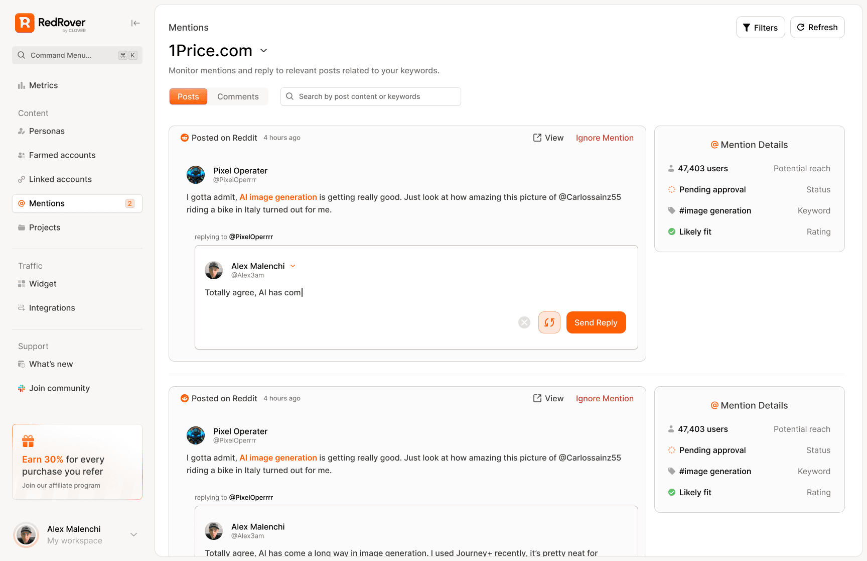 Monitor Hundreds of Threads: Track active conversations across all relevant subreddits and communities.