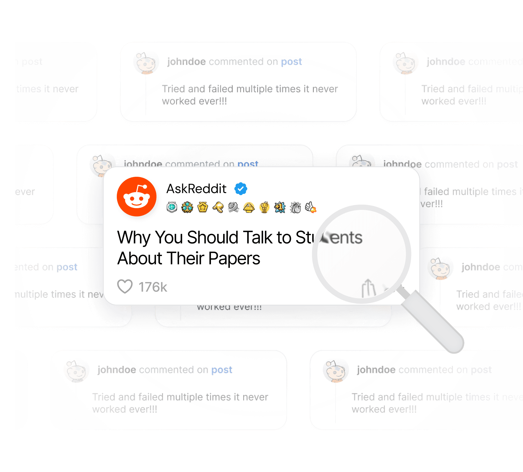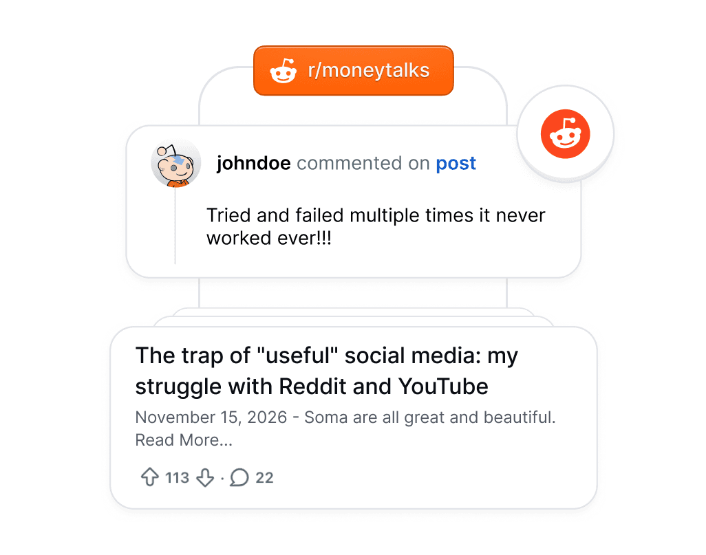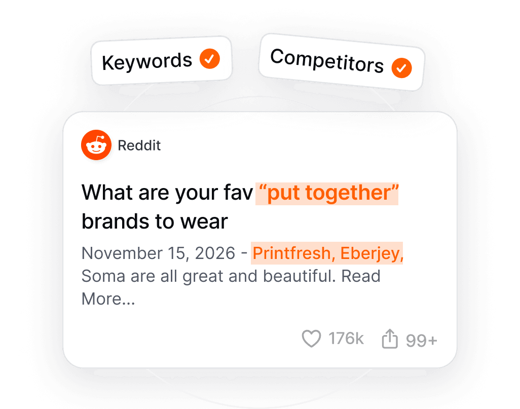 AI agents monitor subreddits 24/7 to join relevant conversations and suggest your product to high-intent users in a natural way.