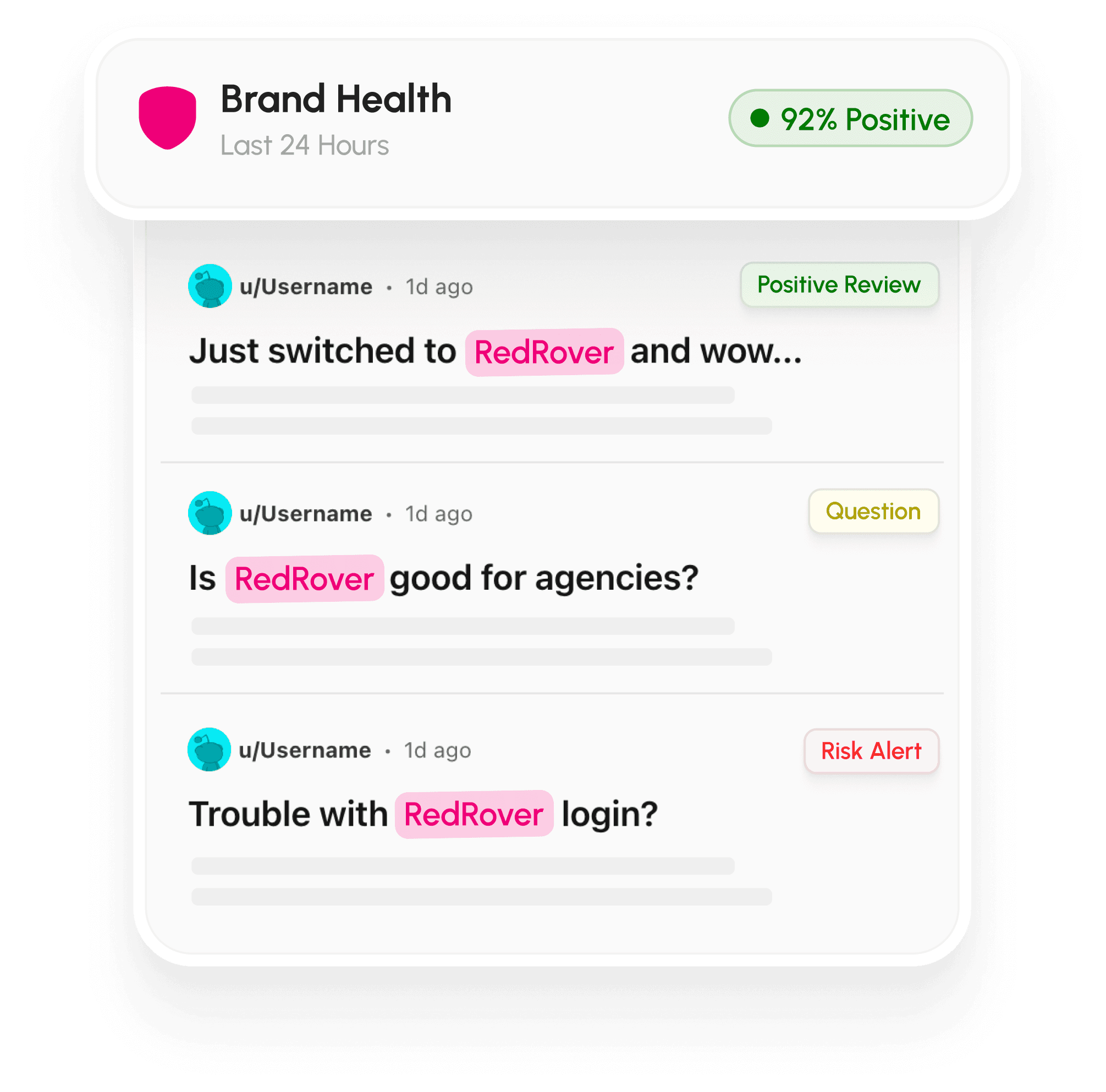 Your brand is being discussed on Reddit every day — in search-indexed threads that shape buying decisions. RedRover makes sure you see every mention, understand the signal, and act before perception is set.